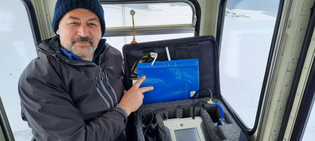 Konstantinos Eleftheriadis, NCSR Demokritos, Greece, daily routine of at least two trips per day up and down the mountain with the portable set of instruments collecting data during the 12 minute trip.