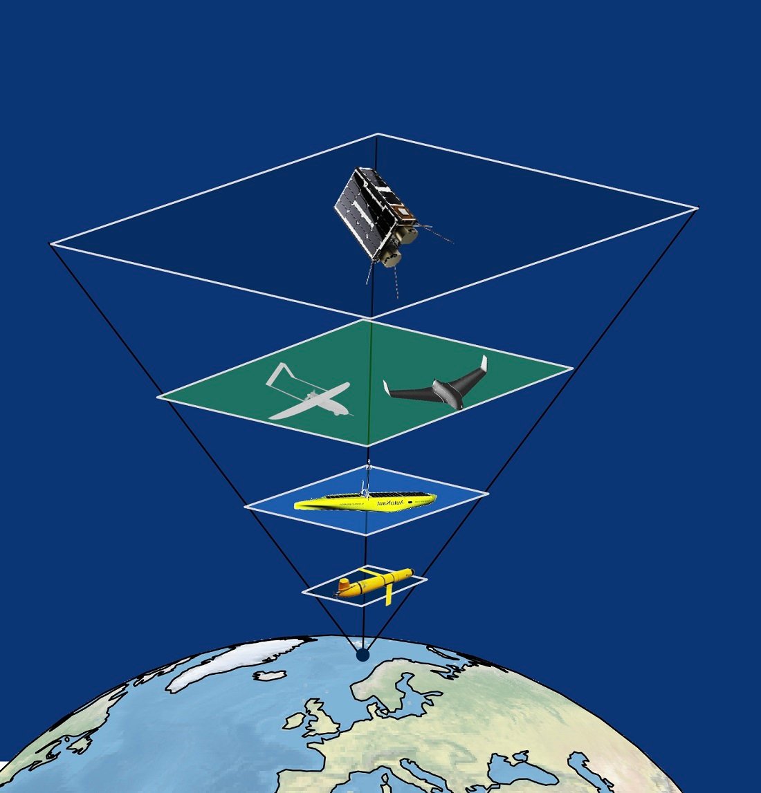 An example of how to use the observational pyramid is to survey normal and harmful algal blooms and the kinds of changes global warming is causing in the ocean in a more continuous way.