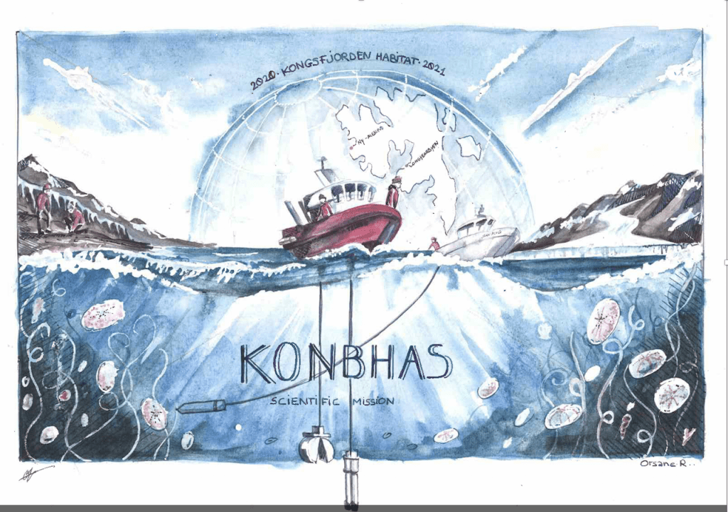 ARTISTIC OUTREACH: Two artists joined the project for a better popularization of the project main findings as well. Their objective was to capture by drawings and paintings the difficulty of field works (!) as well as the rapid environmental changes in the Arctic region. One of their drawings is this one: