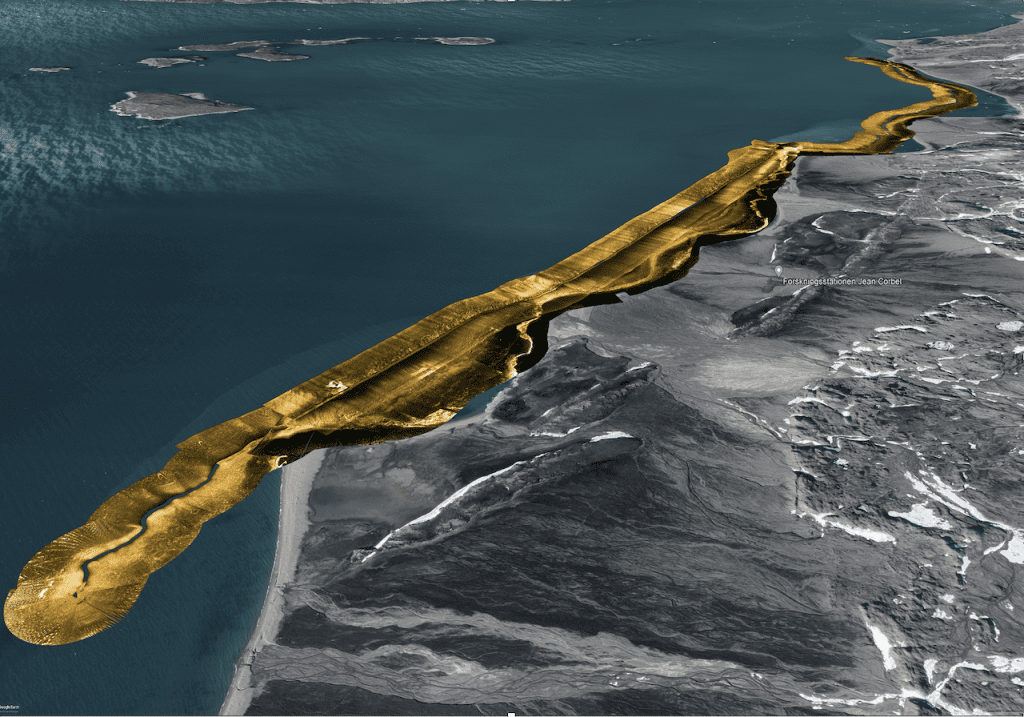 HOW: The team has acquired side scan sonar (SSS) data and sediment samples on the same area since 2009, including during the KONBHAS project (2020-2023) : i.e. 4 times in spring and late summer in Kongsfjorden. The SSS is pulled behind the Jean Floch (IPEV boat) at a speed of 3.5 knots and give a “mosaic” of images of the sea floor. Differential Global Positioning System (DGPS) is used to track and record the successive coastline trace, and the use of Telemetric scan laser allows to acquire digital terrain models (DTM) to quantify sediment transfers on land.