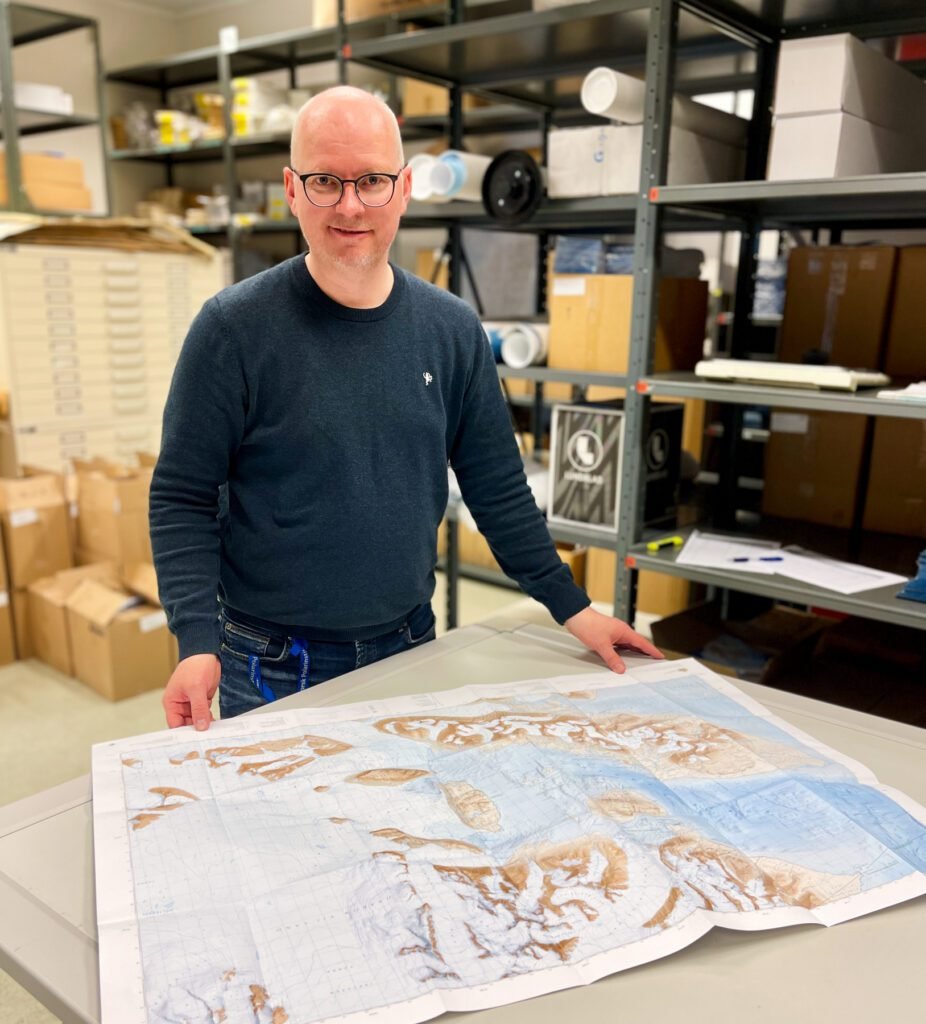 Cartographer Hagerup collaborated with colleague Anders Skoglund, who shaded the seabed. Skoglund also crafted the award-winning map ‘Kongsfjorden in 3D’, featured on the backside of the hiking map. Additionally, archaeologist Per Kyrre Reymert, Kings Bay’s cultural heritage advisor Ingrid Rekkavik, and bird researcher Geir Wing Gabrielsen contributed with details on buildings, abandoned mines, historical infrastructure, bird colonies, cabins, and local names.