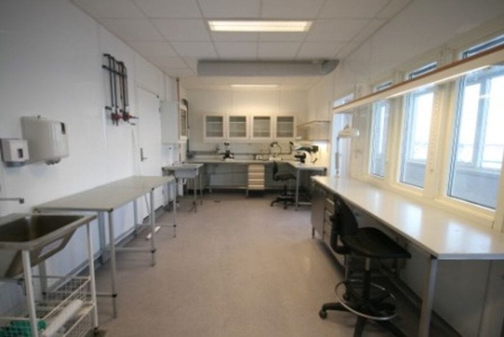 The Marine Laboratory, which opened in 2005, contains smaller rooms equipped with systems that makes it possible to control experimental variables like air and seawater temperature. Outdoor facilities are available for experiments relying on ambient temperature conditions. On the first floor there is a small isotope laboratory and two larger laboratories.